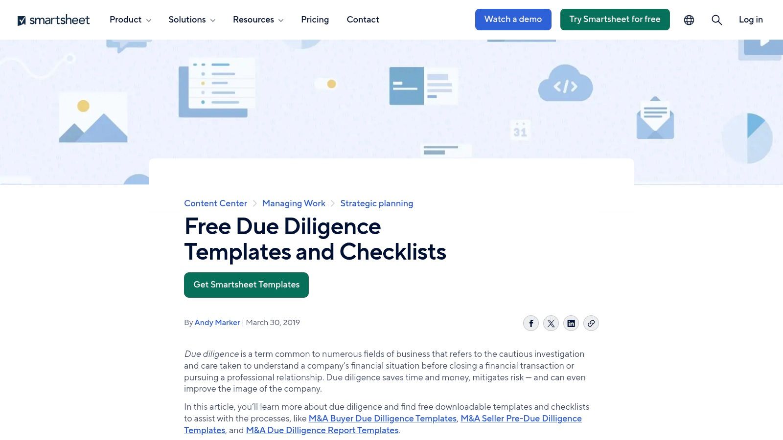 Website: Smartsheet Due Diligence Checklists & Templates