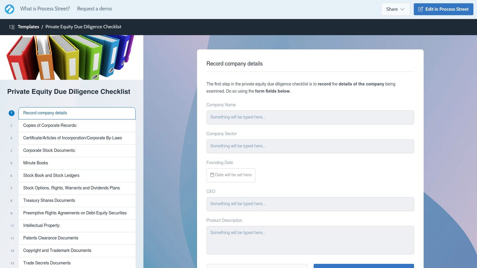 Website: Process Street Private Equity Due Diligence Checklist